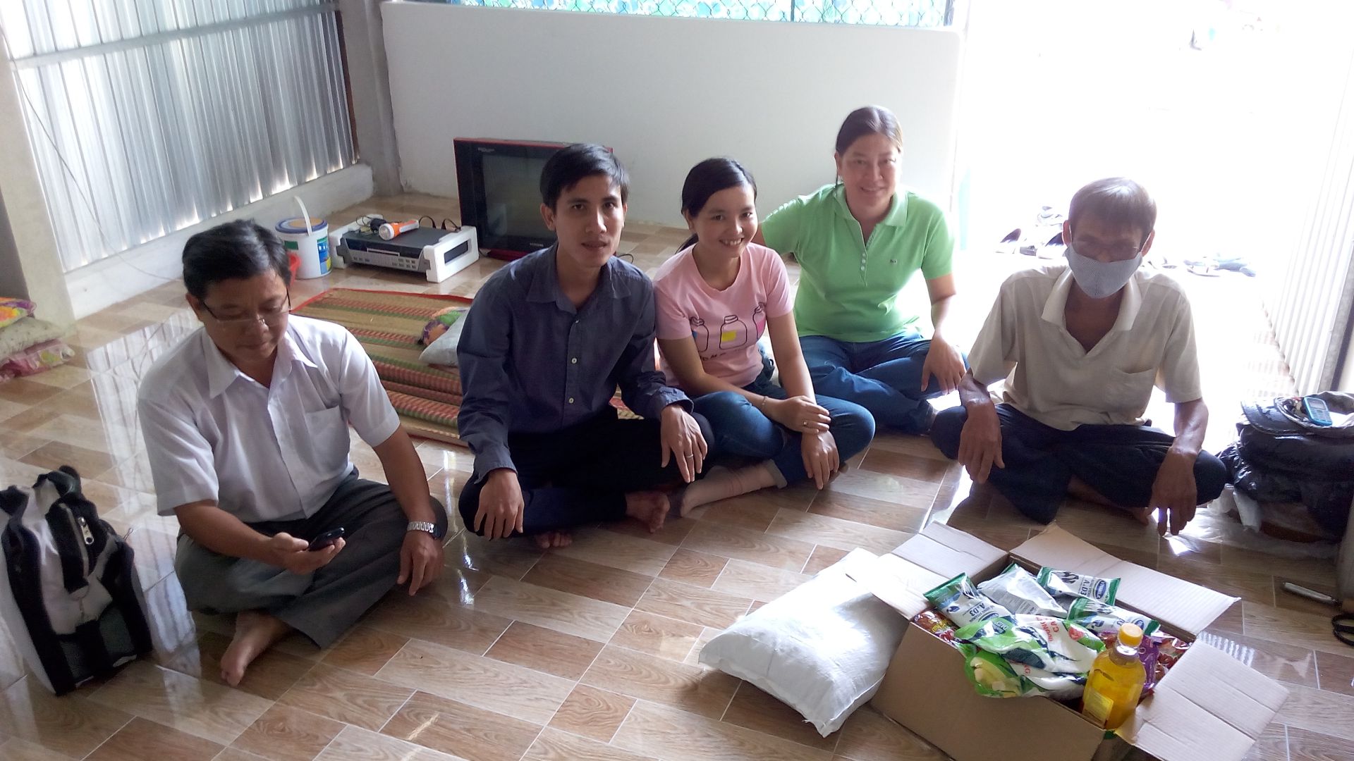 Cán bộ y tế đến thăm nhà và tặng quà cho bệnh nhân lao